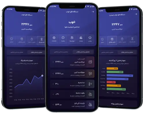 ارسال پیامک و نوتیفیکیشن در زمان عبور آلاینده ها از محدوده هشدار تنظیم شده.